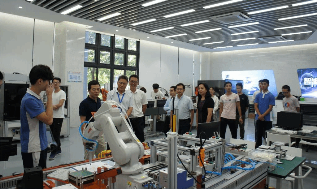 下午14:00到达深圳信息职业技术学院智能制造与装备学院,就自动化专业4+0人才培养工作开展调研和研讨。该院相关领导、教师和辅导员出席会议,并就人才培养方案、学生学籍和社团活动管理、学生学科竞赛组织和管理等方面进行了讨论。随后双方看望了18级学生和正在军训的19级新生。