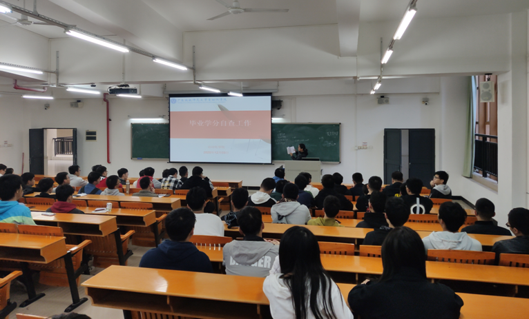 接着,王丹凤教务员为同学们讲解了广东技术师范大学本科生学籍管理细则(广师大〔2019〕582号)和《广东技术师范学院学士学位授予工作细则》(广师院〔2016〕401号和广师大〔2019〕453号),并要求学生根据文件,自查学分及毕业资格。