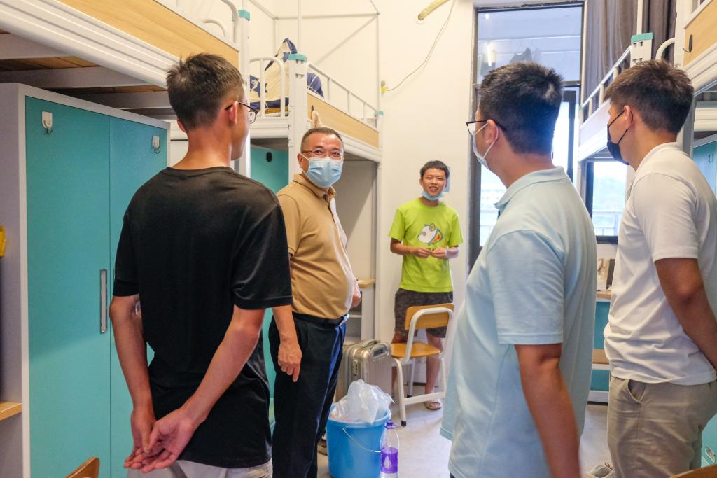 以生为本,走访宿舍送亲切关怀。9月3日下午,学院全体班子成员带领系部主任、辅导员和新生班主任走访了全院每一间新生宿舍,对新生的到来表达了热烈欢迎并进行了亲切交谈,耐心解答新生对大学学习和生活方面的疑惑,同时叮嘱要自觉遵守学校疫情防控规定,共同构筑校园疫情安全防线。