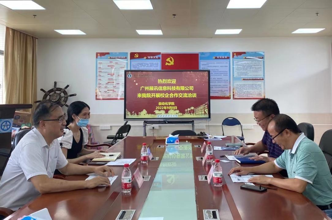 2022年9月8日下午,广州展讯信息科技有限公司总经理李华一行人到我院开展访企拓岗促就业交流洽谈活动,我院党委副书记蒋鹏、副院长熊建斌及辅导员王雯殊参加本次交流活动。