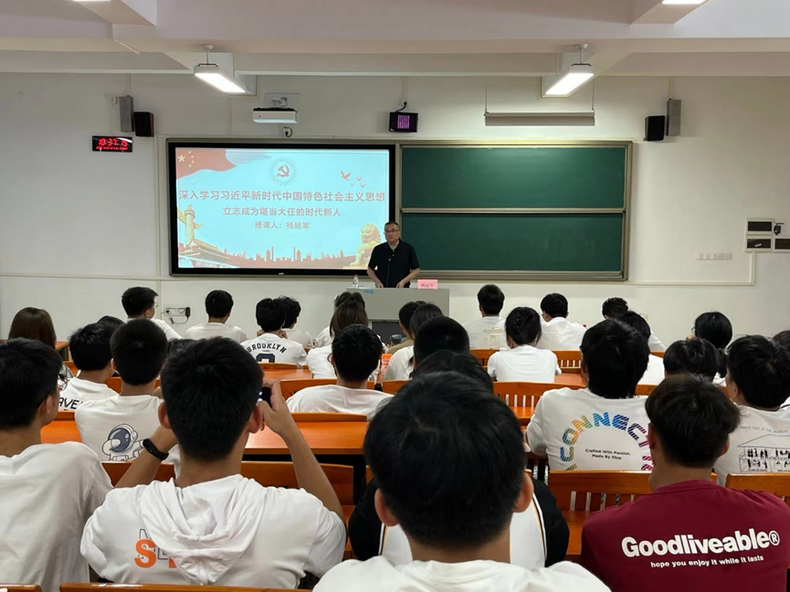 为深入学习宣传习近平新时代中国特色社会主义思想,教育引导广大学生深刻领悟“两个确立”的决定性意义,不断增进对党的创新理论的政治认同、思想认同、理论认同、情感认同,铸牢永远听党话、跟党走的思想根基,9月26日、28日,学院党委杨延军书记、岑健院长分别在河源校区、白云校区为我院学子讲授思想政治教育课。