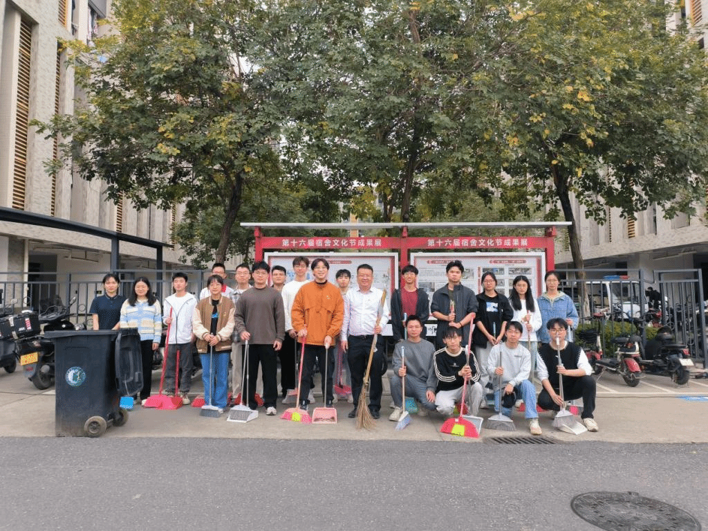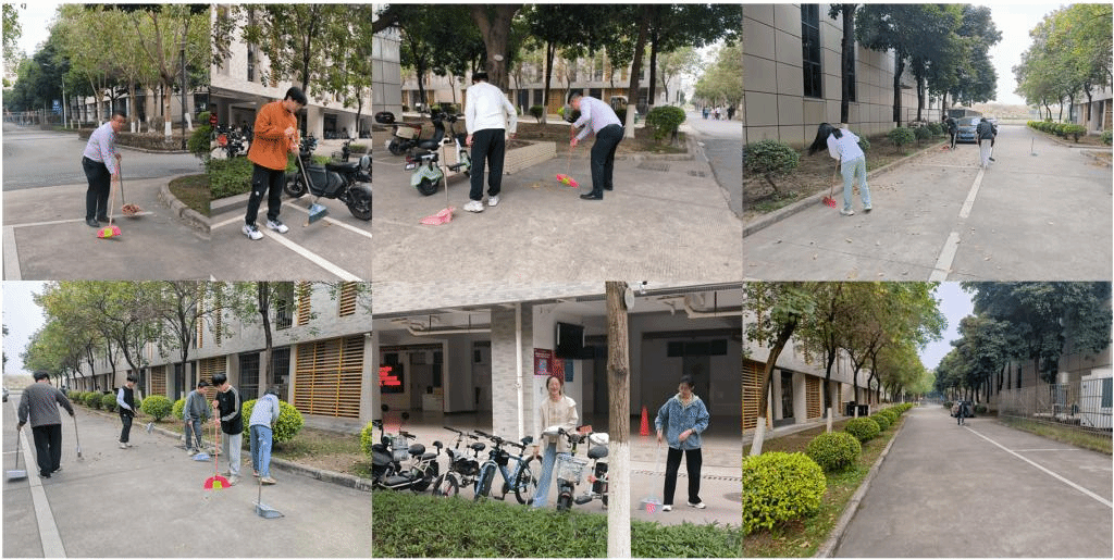 活动现场,学院领导与师生们热情高涨,干劲十足。大家携带扫把、簸箕等清洁工具,对校园内的道路、绿化带、学生活动中心、宿舍楼下公共区域等场所进行了全面清扫。大家分工明确,配合默契,有的负责清扫落叶,有的负责捡拾垃圾,有的负责搬运杂物。在师生的共同努力下,校园环境焕然一新。