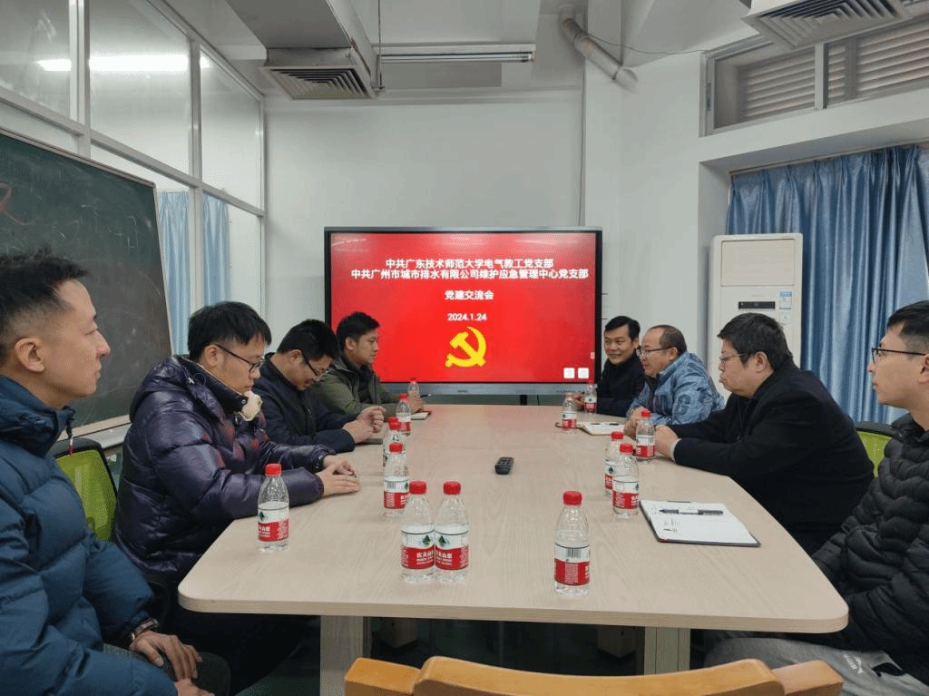 为深化校企合作,产教融合,科技研发、人才培养等工作,推动党建与业务工作深度融合,2024年1月24日下午,广州市城市排水有限公司维护应急管理中心党支部书记、经理郑志会带领团队技术骨干莅临我院进行实地走访调研,并与电气教工党支部开展TapTap点点交流。熊建斌副院长及相关负责同志参加座谈交流。