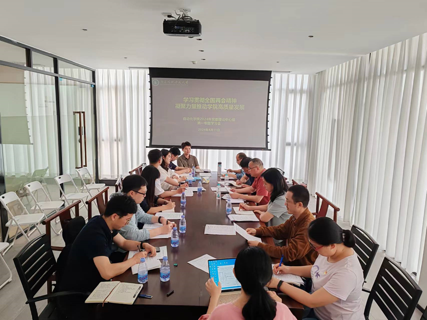 2024年4月11日下午,我院在东校区工业中心809召开党委理论学习中心组第一专题学习会,专题传达学习习近平总书记在2024年全国两会期间系列重要讲话精神和全国两会精神。学院党委委员、党支部书记参加学习。学院党委书记杨延军主持会议。
