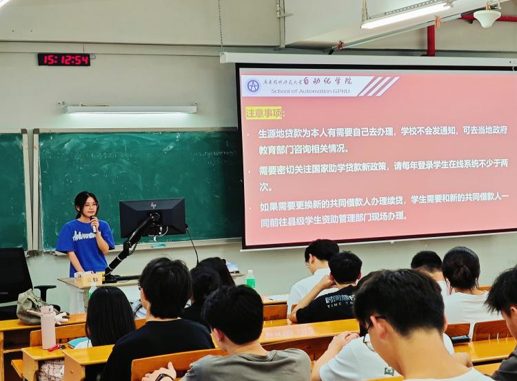 会上,学院助学中心助理为同学们详细讲解了生源地贷款的政策内容、申请条件、材料提交等相关流程,强调了生源地贷款在申请过程中和续贷时应注意的各项问题。