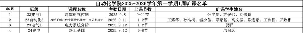 现将TapTap点点官方网站2025-2026学年第一学期1周课堂缺勤情况公示如下: