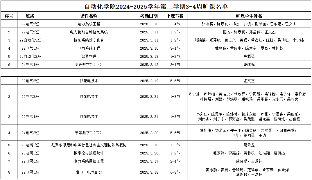 现将TapTap点点官方网站2024-2025学年第二学期3-4周课堂缺勤情况公示如下: