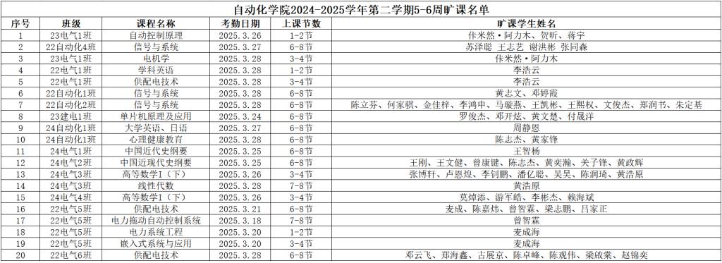 现将TapTap点点官方网站2024-2025学年第二学期5-6周课堂缺勤情况公示如下: