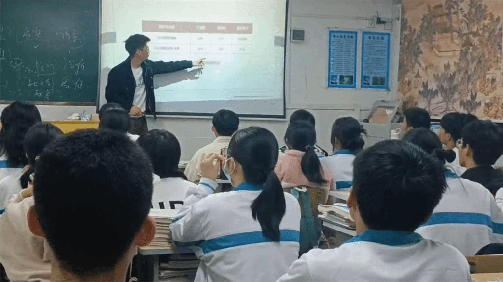图2 2023年2月13日陈思维在汕尾陆丰甲子中学宣传资助政策