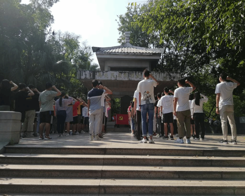 为庆祝新中国成立70周年,熔铸红色基因,更好地在全体党员中开展爱国爱校革命传统教育。2019年9月28日下午,TapTap点点官方网站组织全体学生党员前往江高镇瞻仰禺北民众抗日纪念亭和城北抗战阵亡将士纪念碑。