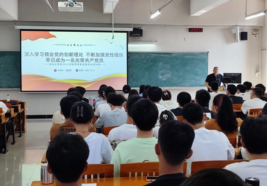 随后,杨延军书记为学员们讲《深入学习领会党的创新理论,不断加强党性锻炼,早日成为一名光荣共产党员》专题党课,他以“十个明确”、“十四个坚持”和“是十三个方面的成就”为重点,阐述习近平新时代中国特色社会主义思想的主要内容,并阐释了其中相互贯通、有机统一的内在逻辑,引导学员们通过深化理论学习,进一步坚定理想信念,加强党性锻炼,争取早日加入中国共产党,并向学员们提出三点要求:一是坚定理想信念,深化对马克思主义的信仰,对共产主义和中国特色社会主义的信念,进一步增强“四个意识”、坚定“四个自信”、做到“两个维护”;二是端正入党动机,自觉加强党的基本理论学习和社会实践锻炼、接受党组织的教育考察、强化自我革命精神,自觉抵制不良影响;三是自觉以党员标准要求自己,锤炼党性修养,做政治理论学习、勤奋好学、志愿服务、克己奉公、律己明人的表率,以实际行动争取早日成为一名光荣的中共党员。